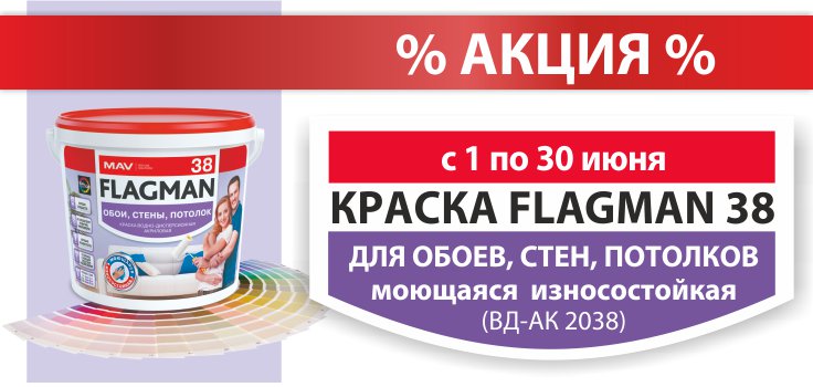 Акция! Только до 31 июня КРАСКА FLAGMAN 38 обои, стены, потолок по сниженной цене!