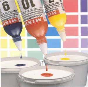 При тонировании специальных материалов, в зависимости от их типа — может произойти реакция несовместимости. Обращайте внимание на рекомендации, указанные на этикетках! Как правило, концентратами MIXOL можно тонировать следующие материалы: лаки на основе синтетических смол, известковые краски, эпоксидные лаки, дисперсии, синтетические лаки, штукатурки и шпатлевки на основе синтетических смол, эмали для отопительных радиаторов, наполнители, полуматовые лаки, водоэмульсионные краски, молотковые краски, краски для цементных полов, хлоркаучуковые лаки, синтетические латексные краски, полимерные лаки, водно-дисперсионные лаки, нитро- и комби лаки, алкидные, а также 1 и 2-х компонентные акриловые лаки, лазури, бейцы, восковые составы для дерева.