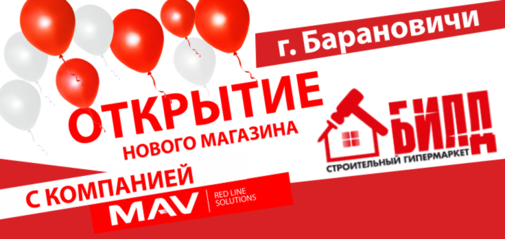 25 июля в г. Барановичи открылся новый гипермаркет БИЛД по адресу: Кирова, 91А. А это значит, что MAV еще на одну розничную точку ближе к своим потребителям!