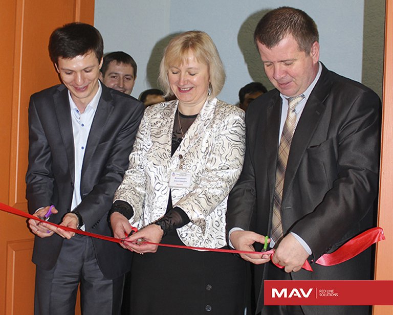 | В торжественной обстановке Первый заместитель директора MAV Владимир Минько, директор лицея Елена Железнякович и Заместитель начальника управления образования Гродненского областного исполнительного комитета Олег Рахунок перерезали красную ленточку, тем самым, открыв для учащихся новые возможности для получения современных знаний в сфере строительства. |