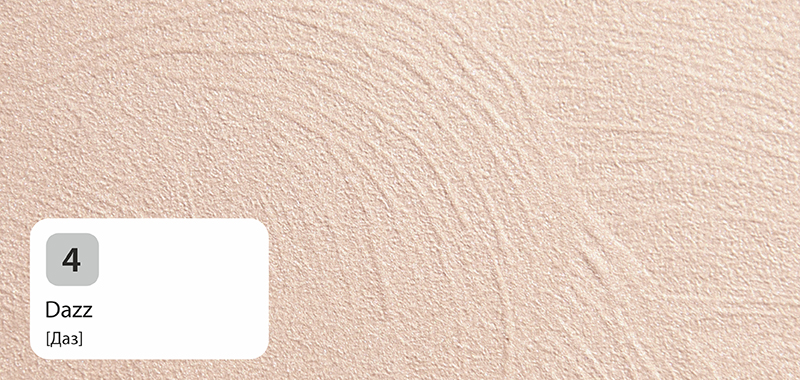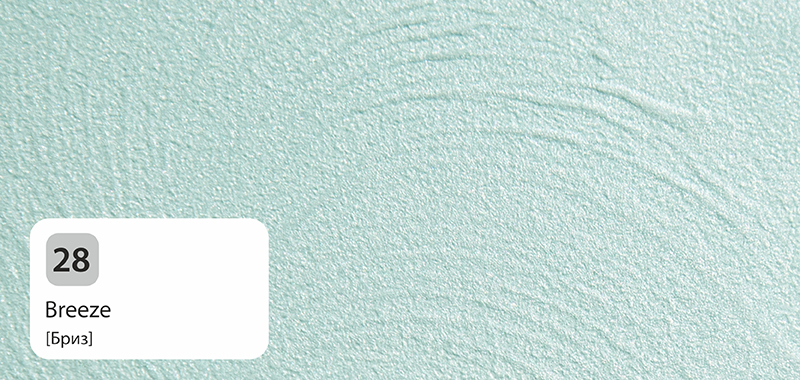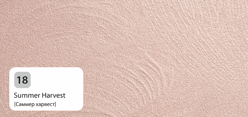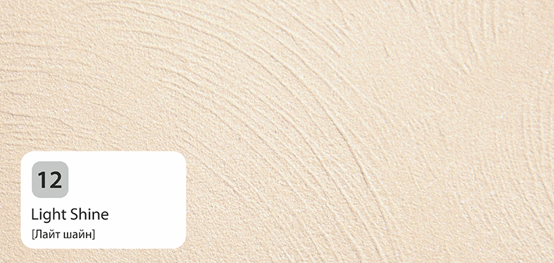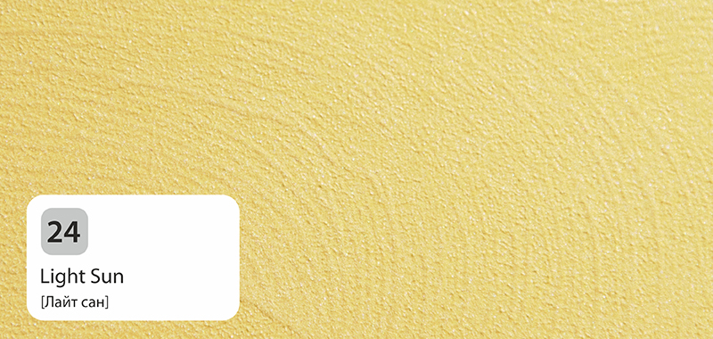 Так как декоративные составы Primavera Effecto полупрозрачны, цвет фона (подложки) влияет решающим образом на конечный результат. Чтобы повторить цветовые решения представленных образцов, допускается применять краску такого цвета, который лишь на тон светлее или на тон темнее состава. В другом случае, смело выбирая резко отличающийся от цвета состава цвет краски (или подложки), можно добиться иного оригинального эффекта отделки.
